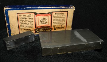 This is a Thuringian hone, like the famous Escher stones; quarried in the Thuringia region of Germany. They were sold specifically as straight razor hones, and that’s kind of interesting; seems like most hones were just sharpening stones – and then someone figured out how to use them with razors.