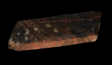 First test blade took a killer polish really quickly. Feel is not like Chalcedony, Jaspers, or either of the two other Strata. Honestly – the honing feel is very much like my surgical black Arkansas. This is a very dense stone, it pushes back at you so pressure has to be regulated meticulously. My first test razor, which was a junk blade sitting in a cup on my bench, took a very high polish over a rusty bevel very quickly – maybe 12 passes with what I’d call moderate-light pressure. I tested the other side of that razors bevel on my Apache Strata, and while there was a similar effect of rust removal and polishing – the efforts on the Gila proved to be significantly greater.