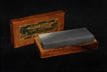 The box reads ‘Hard Arkansas’; back when this stone was sold, there was no ‘translucent’ grade, only hard and soft grades existed. You can tell this is a translucent because it transmits light toward the center of the stone when a flashlight is placed on the edge. Another indicator - the very edges of the stone show the glow from ambient light. The true test though, it to hone on the stone and this gem proved itself beyond question. The feedback is super smooth and ultra fine and the razor edges from it were uber-keen and extremely silky.