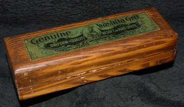 The stone is 7.0 x 2.0 x 0.9”, it behaves much like a top-end Lily White. The box is oak and in startlingly clean condition. The label is fantastic.
