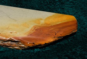Burnt. This is a dark orange/deep umber coloring often seen on Suita but can be present on any Tennen Toishi. When and area of stone shows very dense and hard Yake, it can be problematic to hone on and it can scratch the blade. This word is also used to refer to any pronounced splashes of color on a stone.