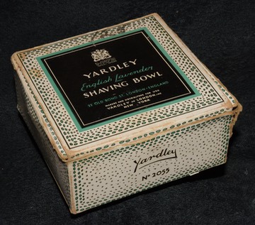 This bowl of Yardley English Lavender shaving soap was manufactured later than 1949, but before 1955. The crest shows the seal of the George VI, soaps made after 1955 would bear the crest of HM Queen Elizabeth II. Soaps made before 1949 bear the crest from HRH The Prince of Wales.