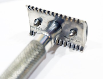 The Big Fellow is a silver-plated razor that was packaged in a nice wood box. This one is in good condition; they are smooth gentle shavers.