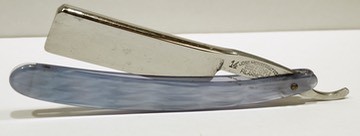 This is a rare #14 “JMP Signature Blade” – a first generation Doble Temple. The JMP initials in the noarly wiped out etch (last pic) were only found on the earlist examples. The 2nd generation DTs show a lyre in that spot. The rear of the tang is not etched “Made in Spain”, dating it to pre 1950. The scales might are most likely not original, the blade was restored before I received it. The 8/8 blade features a full hollow grind,