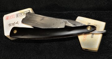 Wade & Butcher 8/8 'For Barbers Use' 8/8 Near Wedge with Barber’s NotchOriginal Horn Scales, New Brass Pins and Collars