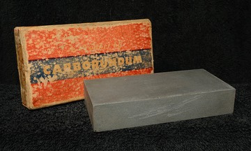 This stone was sold as ‘unfilled’, meaning that the customer might want to ‘fill’ the stone with a lubricant to tame the stone’s aggressive nature. Impregnating the stone with either substance would slow down the cutting and allow the user to get a keener and smoother edge.