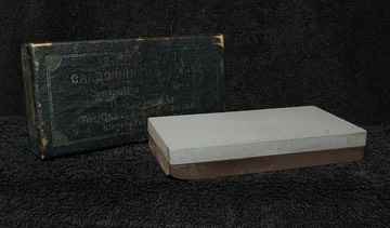 This is a very cool two sided Barber Hone from the Carborundum Company. One side is made out of Silicon Carbide, like the rest of their b-hone line. The other side is made out of Aloxite, which I have to assume is Aluminum Oxide.