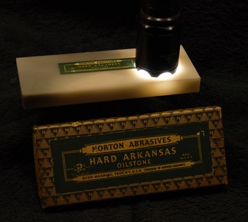 What do we have here? Well, it’s a 5x2” slab of translucent Arkansas stone, in the original box, with the original label, in NOS condition. This one dates to the 1940s, and considering the condition, age and overall rarity, I consider it to be a cornerstone piece for any collection.