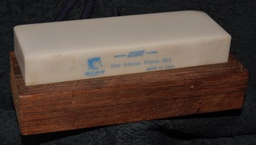 The printed label on the stone says ‘Bear Brand’ but there is no mention of “Behr Maning’ – this tells me the stone may be from the mid-to-late 1950s. The quality level here is outstanding, the translucency is wonderful, and the feel is superb.
