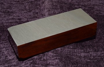 The shape is good, nearly a perfect rectangle; the sides are very true and the bottom is pretty flat and stable on the bench. It’s a thicker and heavier stone, so - while hand-holding is possible, this one’s probably best used on a Dai of some sort.