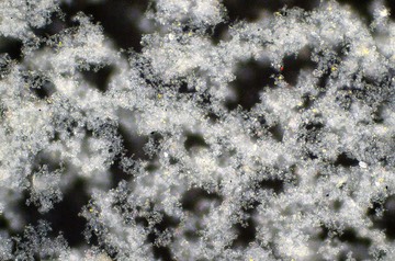 Wet Nakayama Kiita slurry, taken from a stone during honing. Objective – Neo Splan 5x Relay lens – 2.5x Illumination – Reflected DarkfieldBelow - same image with superimposed refernce scale; each division is 10µm.