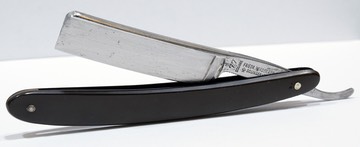 These Solingen Herder straight razors are winners. They take great edges and they shave wonderfully. This one has a 6/8” blade with a full hollow grind that is a little stiffer than you’d expect.