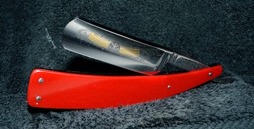 Dorko 15/16 Straight Razor This is the show-side, the G10 scales are red on the front and black on the rear. This rare Solingen has a full hollow grind with a belly.