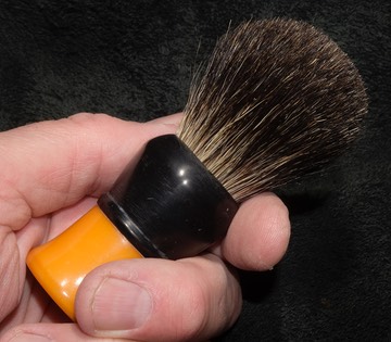 The Rubberset shaving brushes were made very well, better than most Ever Ready brushes actually. This one has a gorgeous butterscotch base with a nice black plastic top to house the base of the knot. Originally, this brush had a boar bristle knot installed, but I replaced it with a super high density black badger knot.