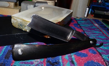 The guess about it’s origin is based on how it hones, the style of the scales and the look of the lead wedge. This was unpinned, the scales were repaired, everything was cleaned up and then reassembled. The edge was honed on a Jnat - and it shaves very well.